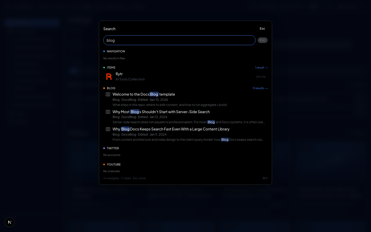 - Escape — Close the search modal